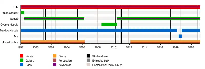 | Past members | Virtual: Paula Cracker Cyborg Noodle Ace |