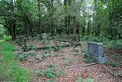 The earliest burials date from 1885, and most of those are from the family of Monroe B. Morton[14] a successful contractor, property owner, newspaper publisher, and developer whose Morton Building in Athens included the Morton Theater and offices for African American professionals. Other smaller cemeteries for African Americans were associated with churches throughout the county, but Gospel Pilgrim was "Athens' first major cemetery controlled by African Americans."[15] Burials were performed there regularly until the 1960s,[14] with the peak decade being the 1940s.[16] and the cemetery fell into disuse and disrepair, probably due to lack of funding; the last burial took place in 2003.[14]