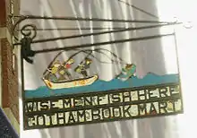 The Gotham Book Mart was a famous Midtown Manhattan bookstore and cultural landmark that operated from 1920 to 2007. The business was located first in a small basement space on West 45th Street near the Theater District, then moved to 51 West 47th Street, then spent many years at 41 West 47th Street within the Diamond District in Manhattan,[1] New York City, before finally moving to 16 East 46th Street. Beyond merely selling books, the store virtually played as a literary salon, hosting meetings of the Finnegans Wake Society, the James Joyce Society,[2] poetry and author readings, art exhibits, and more. It was known for its distinctive sign above the door which read, "Wise Men Fish Here" (sign created by artist John Held Jr.). The store specialized in poetry, literature, books about theater, art, music and dance. It sold both new books as well as out-of-print and rare books.
