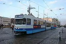 ![]() A tram running at Brunnsparken in central Gothenburg. | |||