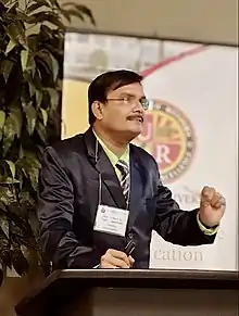 ![]() Bandyopadhyay delivering lecture at Riverside University, US in 2019 | |