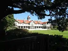 The house's grounds are much more private than the previous residence totalling 12 hectares (30 acres). On one side the gardens border Alexandra Park and the Mt Victoria Town Belt giving the impression of even greater expansiveness. The scale of the ground has allowed a range of different landscapes to be developed; rockeries, flower gardens, lawn areas, and a splendid collection of mature trees. All this contributes to it now being considered a garden of National significance, although there are few ornaments or sculptures to be seen. The extensive grounds contain tennis and squash courts, a bomb shelter, four cottages and a visitor centre.[3]