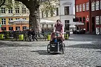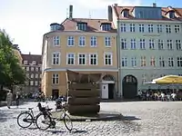 For many years most of the square was occupied by a bunker surrounded by parking spaces.[3] On 7 June 1968 it became car-free as part of first expansion of the pedestrian zone around Strøget; a number of air raid shelters left over from World War II were removed, as well as parking places.[4] According to architects Jan Gehl and Lars Gemzøe the square was not initially very popular, but gradually became more and more popular, especially among students from the nearby University of Copenhagen. By the 1980s the square "was crowded almost beyond capacity throughout the outdoor season,"[4] although it has lost some of its popularity in recent years and is a comparably peaceful place now.