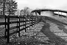 Grace Farms consists of the 48-acre former Windsome Farm, an equestrian facility, and an adjacent 27-acre parcel, which were bought between 2008 and 2009 by the Grace Farms Foundation.[9] An additional five acres were later purchased.[7] The property still features many of the equestrian farm's fences and buildings, including two long barns that have been turned into the welcome center and offices.