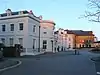 Originally known as "Oak Villa" and later occupied by The Gregg School, this two-storeyed detached house in painted stucco stands just off Grosvenor Square in an "unfortunate setting"[39] very close to other, later buildings. Together with Nos. 4 and 5 (see below) they are all that are left of eight or nine houses forming part of a scheme which was never completed.[39] It has a large semi-circular bow in the centre the whole height of the building divided by pilasters with panelled pilasters at the corners of the house. It has stringcourses between the floors and a cornice carried round the bow, which has three windows, and a single window each side of the bow. | |||