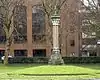 Situated in Queen's Park, this memorial to General Charles Gordon was erected in October 1885, nine months after his death. The "light and elegant structure" comprises a stone base on which there are four polished red Aberdeen granite columns, about twenty feet high. The columns are surmounted by carved capitals supporting a cross. The pedestal bears the arms of the Gordon clan and of the borough of Southampton, and also Gordon’s name in Chinese. Around the base is an inscription referring to Gordon as a soldier, philanthropist and administrator; the inscription mentions those parts of the world in which he served, and closes with a quotation from his last letter to his sisters: — "I am quite happy, thank God! and, like Lawrence, I have tried to do my duty."[33][34] | ||