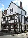 Situated in Bugle Street, the foundations and cellar of this public house are the remains of a house built circa 1220 by Benedict Ace, one of the first mayors of Southampton.[11] In 1338, the house was seriously damaged during the French raid on the town. In about 1494, the building was converted into a public house by the brewer Rowland Johnson who named it the "Bere House". By 1771, the pub had been named the "Shipwrights Arms"[11] with the present name being adopted after the Battle of Waterloo in 1815. The building was again damaged during the blitz of 1940 with the top floor being completely destroyed,[12][13] but was restored in 1962/63.[14][15] The main building is three storeys with exposed square framed timber-framing with plaster infill on a stone base. Each floor oversails the one below it. The first-floor windows are 18th-century, although the ground floor has a modern bar front. | ||