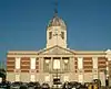 The former harbour office lies on the approaches to the Town Quay; it was built in 1925, in Edwardian Baroque style,[40][41] to replace an earlier building from the 19th century, to the designs of E. Cooper Poole, the Borough Engineer.[42] Constructed of red brick with artificial stone trimmings, it is two storeys high, with a central tower with a cupola surmounted by an iron weathervane featuring a ship surmounting a globe, with the motto: "Janua Maris" ("Gateway to the Sea").[43] The octagonal tower has clocks on four faces and elaborate console brackets. The Town Quay frontage has a cornice and projecting central pediment with six columns. Above the entrance door, there is a balustrade on the first floor. The four windows are now blank; the windows and doorcase have Gibbs surrounds. In 2001, the property was sold to developers; at this time the council's archaeological department recorded the building’s condition before it was refurbished as a casino and restaurant. They reported that "the internal arrangements and decoration are much as built. It was richly decorated, and included moulded plaster panels of famous ships and sea battles. Some of the fittings came from the liner Majestic".[42] The casino is now owned by the Genting Group and trades as "Maxim’s Casino".[44] | ||