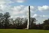 Originally erected on his Weston Grove estate by William Chamberlayne (1760–1829), who was Member of Parliament for Southampton, to commemorate his close friend, the Whig politician Charles James Fox (1749–1806).[7] The monument comprises a tall plain stone obelisk on a square base with three steps, inscribed "The earth is the Lord's and the fulness thereof".(Psalm 24) | ||