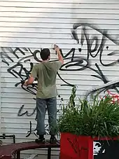 The Council of the City of Toronto has adopted a graffiti bylaw in 2005 (revised in 2011) that lists definitions, prohibitions, and the cost of the offense.[13] "Graffiti art" and "graffiti vandalism" are distinguished. Individuals and businesses under this bylaw must remove graffiti vandalism on their property at their own expense or else the city will remove the graffiti for them and send the bill. Graffiti allowed by municipal permits is called "graffiti art". Graffiti art does not need to be removed.[14]