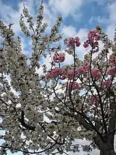 Occasionally, a so-called "graft hybrid" or more accurately graft chimera can occur where the tissues of the stock continue to grow within the scion. Such a plant can produce flowers and foliage typical of both plants as well as shoots intermediate between the two. The best-known example this is probably +Laburnocytisus 'Adamii', a graft hybrid between Laburnum and Cytisus, which originated in a nursery near Paris, France, in 1825. This small tree bears yellow flowers typical of Laburnum anagyroides, purple flowers typical of Cytisus purpureus and curious coppery-pink flowers that show characteristics of both "parents". Many species of cactus can also produce graft chimeras under the right conditions although they are often created unintentionally and such results are often hard to replicate.