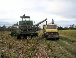Deforestation in the Argentinian part of the Chaco amounted to an average of 100,000 hectares (250,000 acres) per year between 2001 and 2007.[19] According to Fundación Avina, a local NGO, on average, 1,130 ha (2,800 acres) are cleared per day. The soy plantations not only eliminate the forest, but also other types of agriculture. Indigenous communities are losing their land to agribusinesses. Since 2007, a law is supposed to regulate and control the cutting of timber in the Gran Chaco, but illegal logging continues.[20]
