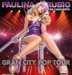 The Gran City Pop Tour is the fourth solo concert tour by Mexican pop and rock singer Paulina Rubio.[1] The tour began in September [2] 2009 in support of her ninth studio album Gran City Pop. The tour began in Primm, Nevada and ended in Medellín the following year."Gran City Pop tour" was considered her most successful tour to date; the tour visited over 13 countries in North America, South America and Europe. The last sold out concert was recorded at the Auditorio Nacional's 10,000+ crowd in Mexico's capital, Mexico CIty.