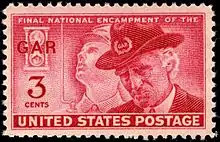 The Commemoration of the American Civil War on postage stamps began during the conflict by both sides. In 1948, the Grand Army of the Republic was commemorated on a stamp.[16] In 1951, the U.S. Postal Service printed a virtually identical stamp for the final reunion of the United Confederate Veterans.[17]