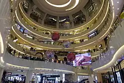 The original use of a round atrium as the central core in the mall, with the majority of the shops circling the atrium in a 360-degree circle design, was another distinctive feature of the mall. In the center of the mall was a circular atrium with a diameter of 30 meters, which developers then spent about $3 million to install large television screens and a musical fountain controlled by computers. However, the design made many visitors to the mall confused and lost, and modernisation works were carried out since 2002; this divided the mall into 4 areas: A, B, C and D. Another major renovation commenced in 2011 and complete in September 2015.