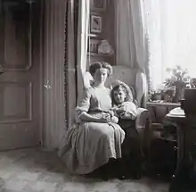 Although she loved Alexandra, Olga had a strained relationship with her mother. "Olga is always most unamiable about every proposition, though may end by doing what I wish", wrote Alexandra to Nicholas on 13 March 1916. "And when I am severe – sulks me."[31] In another letter to Nicholas during World War I, Alexandra complained that Olga's grumpiness, bad humor and general reluctance to make an official visit to the hospital where she usually worked as a Red Cross nurse made things difficult.[32] Parlormaid Elizaveta Nikolaevna Ersberg told her niece that Nicholas II paid closer attention to the children than Alexandra did and Alexandra often was ill with a migraine or quarreled with the servants.[33] In 1913, Olga complained in a letter to her grandmother, Dowager Empress Maria Feodorovna about her mother's invalidism. "As usual her heart isn't well", Olga wrote. "It's all so unpleasant."[34] Queen Marie of Romania, who met Olga and her sisters when they visited Romania on a state trip in 1914, commented in her memoirs that the girls were natural and confided in her when Alexandra wasn't present, but when she appeared "they always seemed to be watching her every expression so as to be sure to act according to her desires."[35]