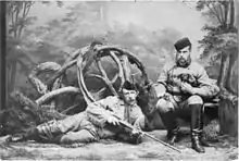 The Grand Duke in the company of General Philip Sheridan, General Edward Ord, and Lt. Colonel (Brevet Major General) George Armstrong Custer, the latter having been selected to be grand marshal of the hunt, arrived at Fort McPherson on 13 January 1872, by a special train provided by the Pennsylvania Railroad Company. They were greeted by an enthusiastic crowd, headed by Buffalo Bill. After speeches, party set out for the hunting grounds lead by Buffalo Bill's partner Texas Jack Omohundro.[48][49]
