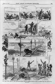 From there the train continued to Denver where Alexei arrived on 17 January. While in Denver, he attended an honorary ball sponsored by the Pioneer Club and visited some mines. He apparently loved the new sport he had just learned and hunted buffalo again near Colorado Springs, on his return trip from Denver through Kansas to St. Louis. However, the horses used to hunt in eastern Colorado were cavalry mounts and unaccustomed to buffalo; several hunters were injured during the resulting confusion. Alexei was unhurt and succeeded in killing as many as 25 buffalo. He even shot a few more from the train on its way across western Kansas toward Topeka, which was reached on 22 January.[51] It is claimed that, by the time they reached St. Louis, the party's supply of caviar and champagne had been exhausted.[49][52][53][54][55][56][57]