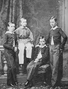In 1874, Alexei accompanied his father to England, to visit his sister the Grand Duchess Marie Alexandrovna, recently married to Queen Victoria's son Prince Alfred.[81]