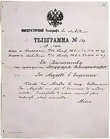 Some historians claim that they were morganatically married and that the marriage was annulled by the Russian Orthodox Church,[2][3] because, according to the "Fundamental Laws of the Imperial House", this marriage was illegal. However, articles 183 and 188, which prohibited marriages without the consent of the emperor, were included in the Fundamental Laws only by the 1887 revision under Tsar Alexander III. The rules valid in 1870 did not prohibit morganatic marriages, but simply excluded their offspring from the succession to the throne.[4] There is no evidence either to the marriage or to the divorce. There is also no evidence that Alexei even requested the permission to marry. As Alexandra Zhukovskaya was not an aristocrat and, besides, the daughter of an illegitimate son of a Russian landowner and a Turkish slave, such a marriage would have been unthinkable.[5]