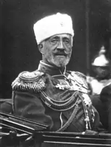 Grand Duke Nicholas Nikolaevich of Russia (Russian: Николай Николаевич Романов (младший – the younger); 18 November 1856 – 5 January 1929) was a Russian general in World War I (1914–1918). The son of Grand Duke Nicholas Nikolaevich of Russia (1831–1891), and a grandson of Emperor Nicholas I of Russia, he was commander in chief of the Russian Imperial Army units on the main front in the first year of the war, during the reign of his first cousin once removed, Nicholas II. Although held in high regard by Paul von Hindenburg, he struggled with the colossal task of leading Russia's war effort against Germany, including strategy, tactics, logistics and coordination with the government.[3] After the Gorlice–Tarnów Offensive in 1915, Tsar Nicholas replaced the Grand Duke as commander-in-chief of the army. He later was a successful commander-in-chief in the Caucasus region. He was briefly recognized as Tsar, Emperor of Russia in 1922 in areas controlled by the White Armies movement in the Russian Far East.