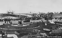 Work began on building the pier on 7 November 1903, with P. Munroe acting as engineer, and it opened on 11 June 1904.[4] At the pier's end was a 2,000-seat theatre which was used as a music hall and for opera, stage plays and ballet. On 16 May 1907 an extension of the pier measuring 500 yards (1,500 ft) was opened, with the intention that the pier would be used as a docking point for boats to Cardiff. The dangerous currents in the bay made this too difficult, however, and the extension was demolished.[5]