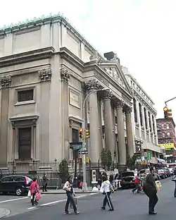 Cooperative Village, a collection of housing cooperatives, covers several blocks near the eastern portion of Grand Street. Other notable buildings include the old Police Headquarters Building, the Home Savings of America building and the Bialystoker Synagogue. The Grand Street subway station (B and D trains) serves the street.