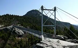 Grandfather Mountain[1] is a mountain, a non-profit attraction, and a North Carolina state park near Linville, North Carolina. At 5,946 feet (1,812 m), it is the highest peak on the eastern escarpment of the Blue Ridge Mountains, one of the major chains of the Appalachian Mountains. The Blue Ridge Parkway passes by the south side of the mountain and also passes over the nearby Grandmother Gap. It is located at the meeting point of Avery, Caldwell (highest point), and Watauga (highest point) counties.
