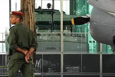 Granma is the yacht that was used to transport 82 fighters of the Cuban Revolution from Mexico to Cuba in November 1956 for the purpose of overthrowing the regime of Fulgencio Batista. The 60-foot (18 m) diesel-powered cabin cruiser was built in 1943 by Wheeler Shipbuilding of Brooklyn NY as a light armored target practice boat, US Navy C-1994 and modified postwar to accommodate 12 people. "Granma", in English, is an affectionate term for a grandmother; the yacht is said to have been named for the previous owner's grandmother.[1][2][3]