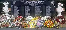 Families and friends of the victims and survivors gather with surviving members of the rescue crews annually.[10] The ceremony ends with the throwing of 84 roses on to the tracks to mark the number of passengers killed.[11] In 2007, a plaque was placed on the bridge to mark the efforts of railway workers who assisted in rescuing survivors from the train.[11]