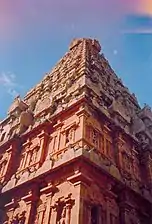 The pyramidal structure above the sanctum at Brihadisvara Temple