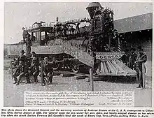 ![]() The Andrews Raiders set a train car on fire to try to ignite a covered railway bridge and thwart Confederate pursuit. | |||||||