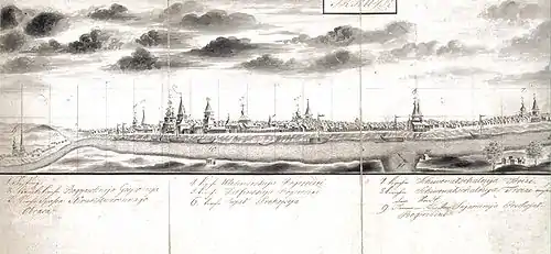 Their next destination was Yakutsk, where the participants in the academic component were to meet with Bering and were then meant to travel on to Kamchatka together. After their departure from Irkutsk, the two scholars journeyed along the icy Angara River to Ilimsk, where they celebrated Easter. When the Lena River was free from ice, they resumed their voyage, travelling downstream with boats. They reached Yakutsk in September 1736. Almost all the members of the two Pacific divisions of the expedition had gathered there in the meantime, and as a result, Gmelin and Müller experienced difficulties in locating accommodation.