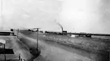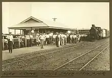 Work did not get underway until September 1906 but proceeded rapidly, with temporary crossings of the dry river beds being made ahead of bridge construction so track laying was not delayed. In this arid region that was not a problem for most of the time, and explains the large time difference between the arrival of the first train and the official opening of a section.