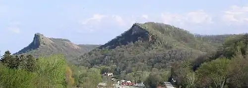 High up on the sides of several bluffs are rare habitats called goat prairies by locals, because they are so steep it would seem only goats could graze on them. These patches of prairie grow only on slopes between 40 and 50 degrees which face south to southwest. This orientation catches prodigious amounts of sunlight, which in winter means the ground thaws daily and freezes nightly, retarding the establishment of any woody plants.