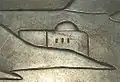 In the 1937 standardized seal there is a building on the far left rear hill that has been interpreted in a variety of ways. The building, along with the break in the mountains, may have been added to give San Francisco Bay a stronger claim on its location being the landscape portrayed in the seal.[14] This building first appeared in unofficial versions of the seal as early as 1875,[15] and in most of these, the building was clearly meant to represent Fort Point in San Francisco.[16][17]