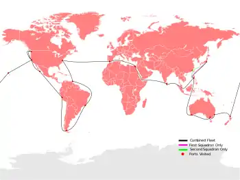 | Gibraltar | 31 January – 1 February 1909 | 6 February 1909 | 3,579 nmi (6,628 km) |