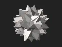 In geometry, the great inverted snub icosidodecahedron (or great vertisnub icosidodecahedron) is a uniform star polyhedron, indexed as U69. It is given a Schläfli symbol sr{5⁄3,3}, and Coxeter-Dynkin diagram ![]()