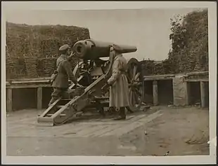 While Athens tried to maintain a balance between the warring coalitions and defend what remained of the country's neutrality, the Allies imposed a limited embargo on coal and wheat imports and seized Lesbos on 28 December for use as a base of operations. On the same day, three German airplanes bombed British positions in Thessaloniki, after which Sarrail arrested all foreign consuls in the city and detained them on an Allied warship.[48] Allied encroachments on Greek sovereignty continued to gather pace: on 10 January 1916, the Allied ambassadors announced that the Serbian troops would be ferried from Albania to the Greek island of Corfu, which was seized by French troops on the next day.[49] In order to impede a possible Bulgarian advance, on 12 January, Sarrail ordered several railway bridges blown up, and on 28 January, French troops seized the Karabournou Fortress to control the entry to the Thermaic Gulf. Both steps were taken without the agreement of the Greek authorities or even consultation with General Mahon, but enraged Greek public opinion, which began to turn against the Allies.[50]