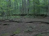 Like the Sugarlands and Roaring Fork to the west, Greenbrier's bottomlands and streambeds are coated with sandstone, phyllite, and slate rocks of all sizes. During the Ice Ages, the cold weather caused fracturing of the high mountain slopes, creating boulder fields. Over the centuries, erosional forces carried these boulders to lower elevations.[3] Greenbrier's residents used these rocks for fencing in lieu of barbed wire, creating the long rock walls that criss-cross the area today.