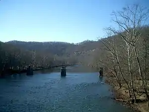 C&O Railway pillars of the Second Creek Tunnel along the Greenbrier River