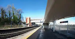 The station was rebuilt in 2008 to improve accessibility for disabled users and upgrade the station and ticketing facilities. The construction used a modular design developed by Network Rail that was first pioneered at Greenhithe with Mitcham Eastfields and Corby later constructed in the same way.[1]