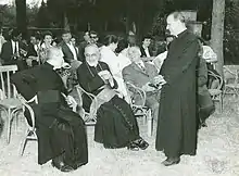 He attended the Russian Orthodox Tiflis Seminary and then the Pontifical Urban University in Rome in 1906.[8][9] His outstanding performance in the latter was noted by Pope Pius X, who told young Agagianian: "You will be a priest, a bishop, and a patriarch."[10] He was ordained priest in Rome on December 23, 1917.[11][12] Despite the upheaval bought by the Russian Revolution, he thereafter served as a parish priest in Tiflis and then as the head of the city's Armenian Catholic community from 1919.[4] He left for Rome in 1921 when Georgia was invaded by the Red Army and did not see his family until 1962, when his sister Elizaveta traveled to Rome through the intervention of Soviet leader Nikita Khrushchev.[8]