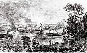 Prior to European settlement, numerous Native American villages were present in Grenville County; when the settlers first arrived, these natives still occupied the area and were essentially forced out by the settlements.[3] The French briefly occupied this area at present-day Johnstown, in what was to become Edwardsburgh township, and at Pointe au Baril (present day Maitland) in what would be Augusta township. These French settlements date back to 1670 and 1759 respectively.[2]