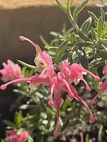 A number of naturally occurring forms have been introduced into cultivation from localities including Adelaide Hills, Black Range, Flinders Ranges, Little Desert, Mount Compass, Penola, Victor Harbor and Woakwine.[2] The commonly grown cultivar G. lavendulacea 'Tanunda' is thought to have originated from Aldinga in South Australia, rather than Tanunda in the Barossa Valley where a different form occurs.[3]