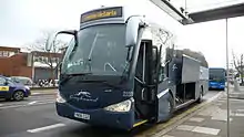 The coaches originally had 49 seats, and were purchased in 2005/06 for use on FirstGroup's National Express contracted work. They were based at First's depots at Bristol, Cheltenham and Northampton and used on National Express routes 040 Bristol to London Victoria, 200 Bristol to Gatwick Airport, 412 Gloucester to London Victoria, 222 Hereford to Gatwick Airport and 707 Northampton to Gatwick Airport. After refurbishment they had only 41 seats providing extra legroom and a 41" seat pitch, free wireless internet and at-seat power sockets.[16]