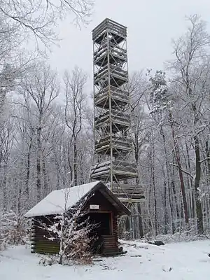 At the summit of the Eyberg is an 18-metre-high, observation tower, of steel lattice construction, which was built between 1945 and 1949 by the French Army. The tower can only be accessed over unmetalled hiking trails.