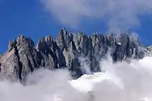 ![]() The Gross Fusshorn (left) and the Geisshorn (centre-left) from the south side | |