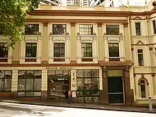 - Federation Hall and courtyard – Constructed in the late Victorian style between 1889 and 1891, the Federation Hall and courtyard is located at 24-30 Grosvenor Street and is currently used as the Sydney Futures Exchange. The building was extended substantially from 1923–24 and was at one stage known as the Meat Board Building. It is located next door to Royal Naval House and was restored along with that building. It is also listed on the NSW State Heritage Register.[6]