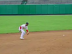 A ground out is a method of putting out a batter in baseball. In such a play, a defensive player catches a batted ball hit on the ground by the batter and throws the ball to a defensive player at first base before the batter can successfully reach the base, or records an out elsewhere via a fielder's choice.[1]